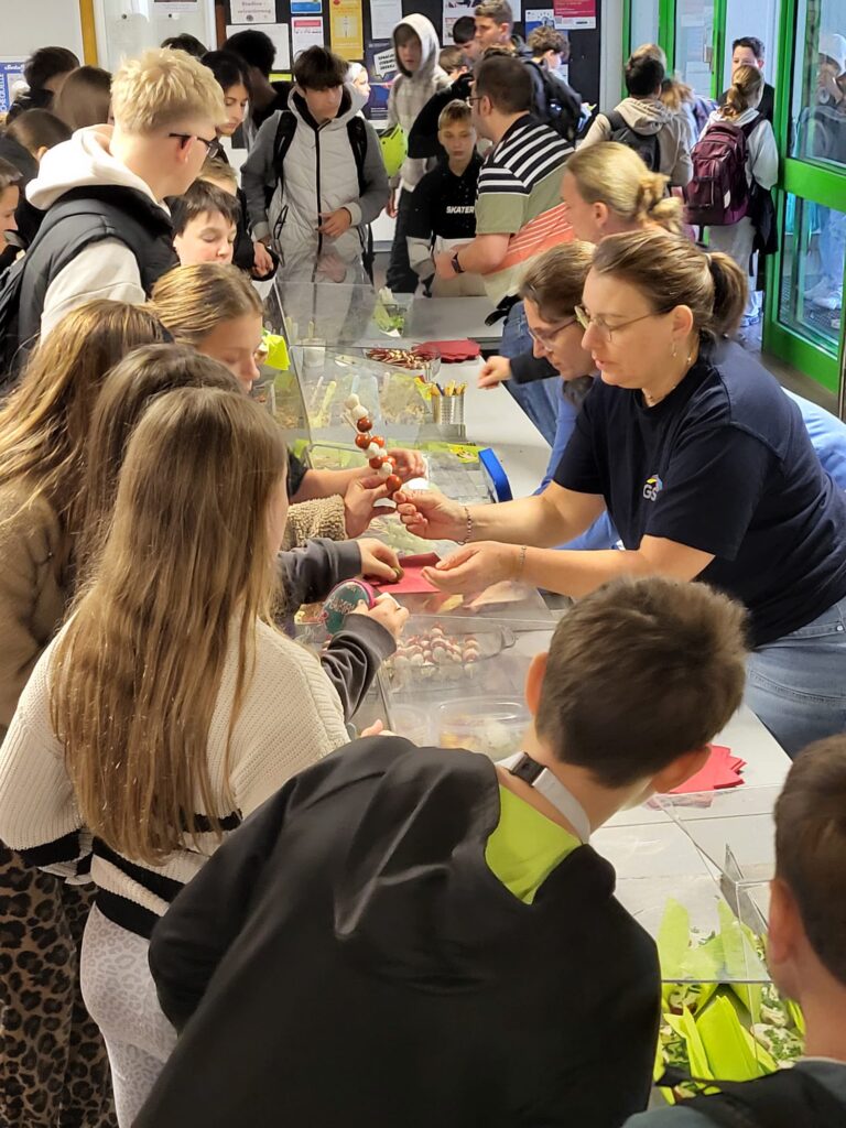 Ebenso danken wir den vielen Eltern, die mit ihren Lebensmittelspenden unterstützen, sowie den Mitgliedern des Fördervereins und den Schülerinnen, Schülern und Eltern, die schon früh morgens in der Schulküche Obst und Gemüse vorbereiten, Brote belegen und Brötchen anrichten.
